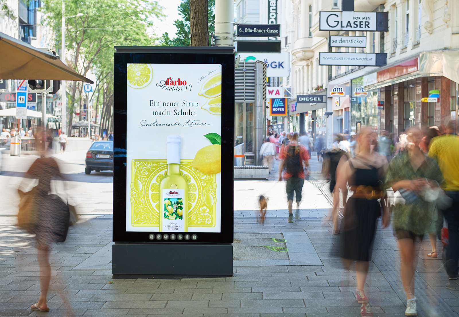 Nicht nur der sommerliche Fruchtsirup Sizilianische Zitrone ist neu in der Darbo Welt, sondern auch die erstmalige Umsetzung einer Out of Home-Kampagne über die Gewista, gemeinsam mit Demner, Merlicek & Bergmann/DMB. und Media1. Die fruchtig-farbenfrohen Sujets und Spots werden via Plakaten sowie analogen und Digitalen City Lights in einer groß angelegten nationalen Streuung im Juli ins Szene gesetzt.