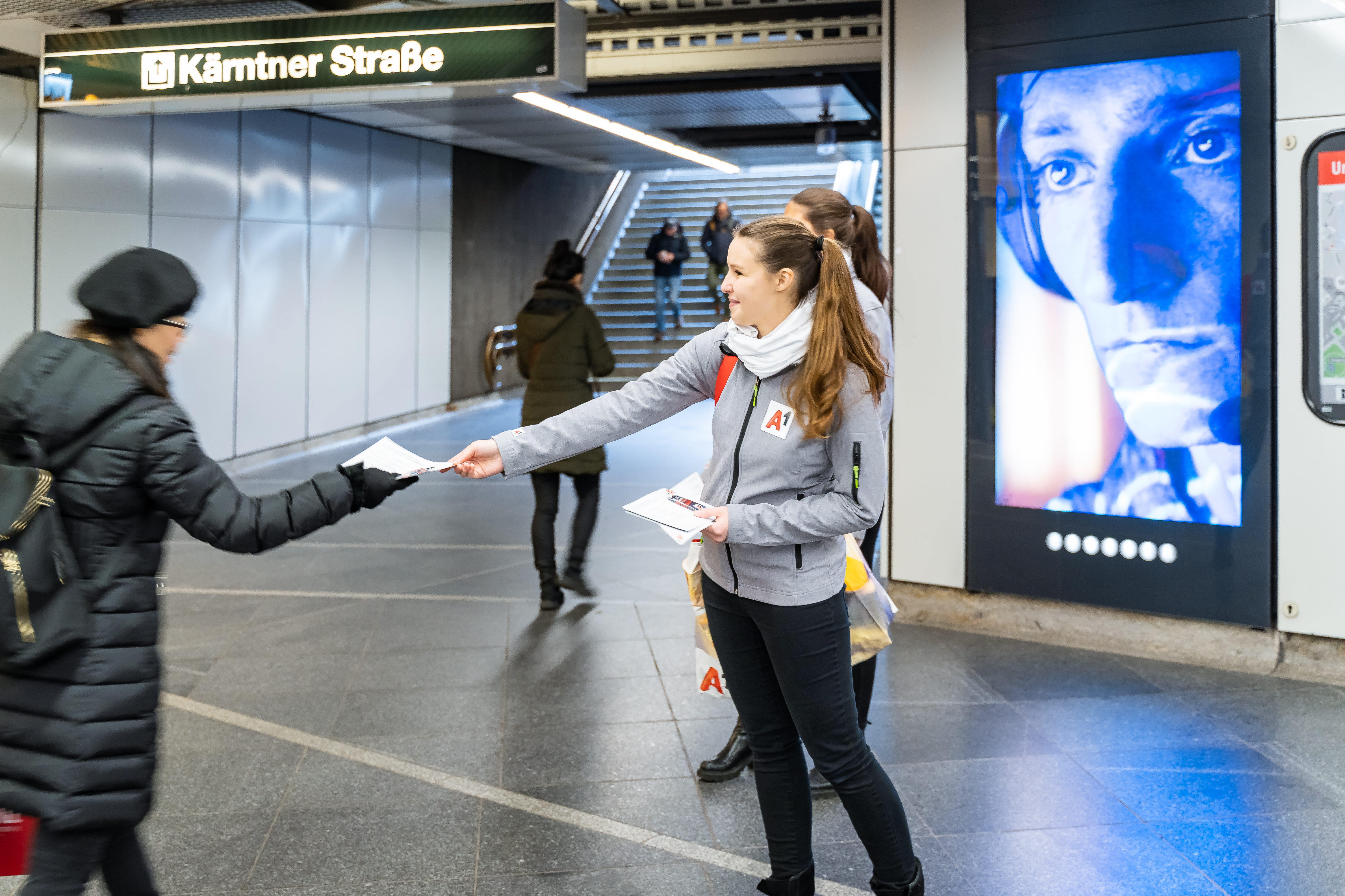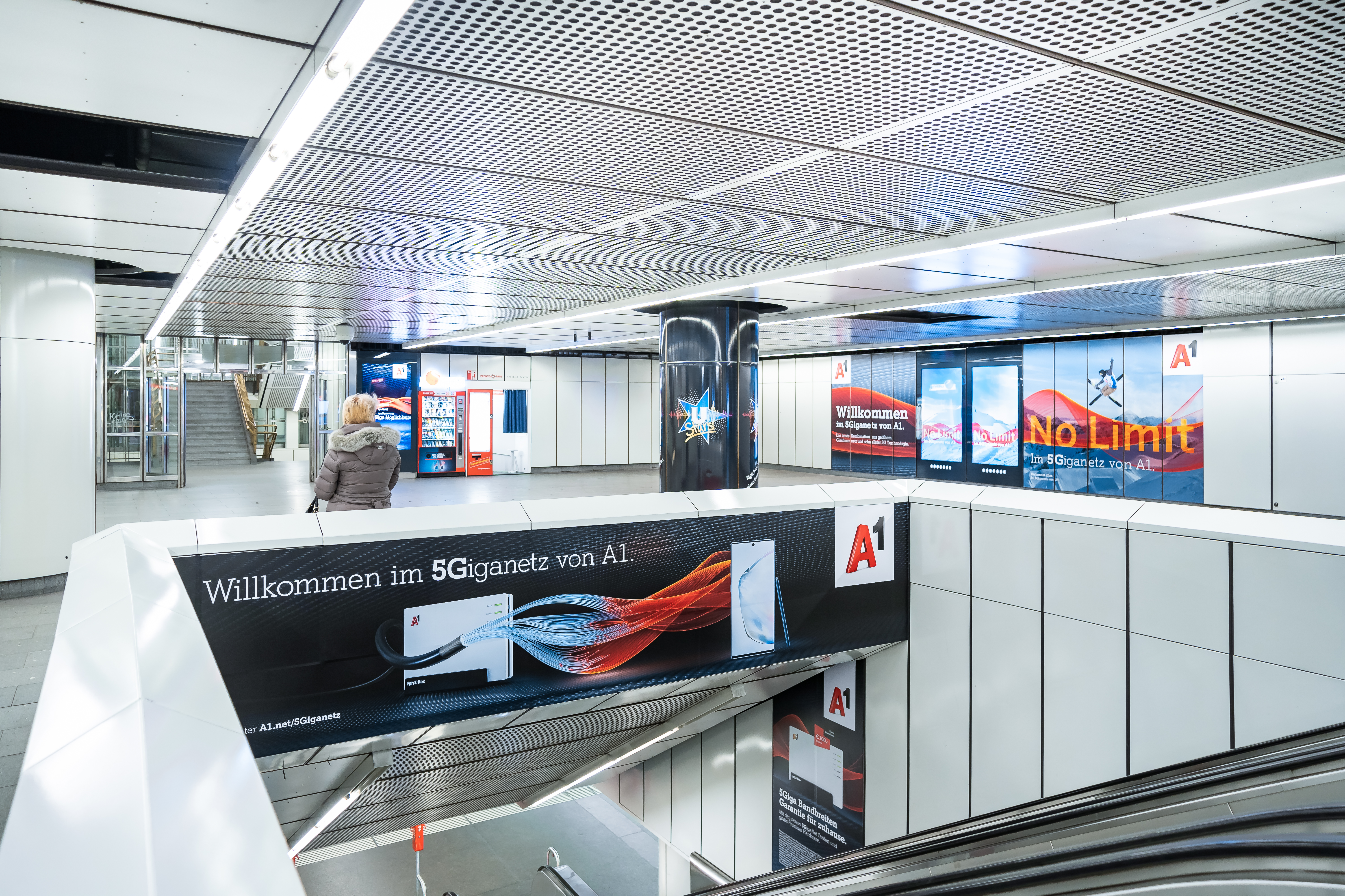 Die werblichen Gestaltungsmöglichkeiten von U-Bahnstationen sind äußerst vielfältig. Sie reichen von der Nutzung von digitalen City Lights in unterschiedlichsten Variationen über Brand Areas - dies sind Folienbrandings an den Wandfächern unter der Einbeziehung von digitalen City Lights - bis zu Sampling-Areas. Die Sampling Area besteht aus den digitalen City Lights der U-Bahnstation Stephansplatz, die in Kombination mit 3 fixen Standorten an denen das Sampeln von Produktproben möglich ist, gebucht werden kann. Die Kombination von Werbung auf den digitalen Screens, die in optimaler Sichtweite der Samplingstandorte liegen sowie die eindrucksvollen Brandings an den Wandflächen, haben A1 überzeugt sein 5Giganetz darüber zu bewerben. Die 3 Sampling Areas sind weiters so bei den Ausgängen positioniert, dass die Promotoren die Passanten in der Flussrichtung perfekt mit dem gewünschten Samplingmaterial bedienen können, ohne diese zu unterbrechen. Nach der U-Bahnstation Stephansplatz werden zeitnah weitere Stationen mit der neuen Sampling Area buchbar sein.