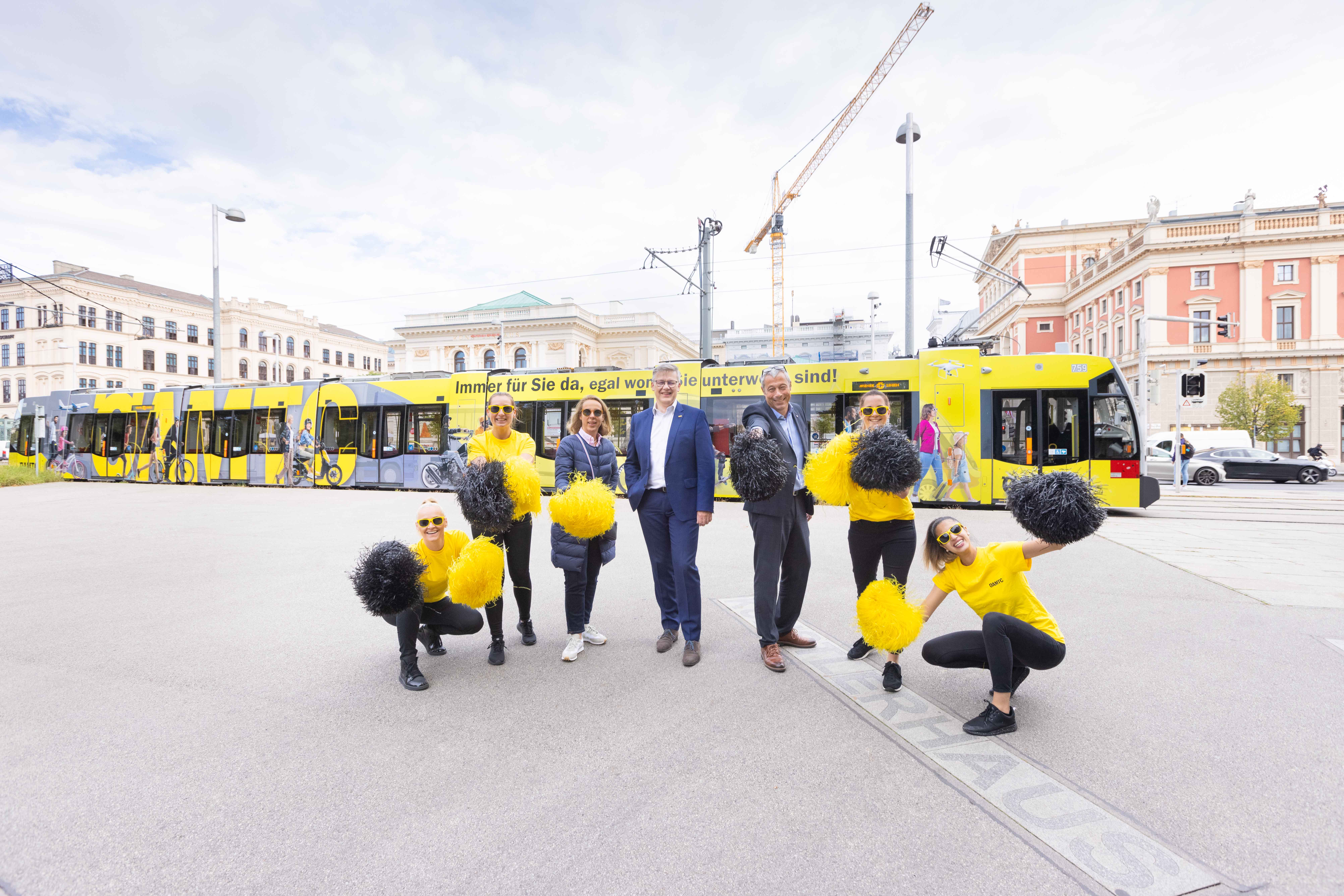 Ab sofort erstrahlt eine Niederflurstraßenbahn der Wiener Linien im leuchtenden Gelbton des ÖAMTC. Das eindrucksvolle Branding zeigt Menschen in ihrer vielfältigen Mobilität und kommuniziert, „der ÖAMTC ist immer für Sie da, egal womit Sie unterwegs sind“.