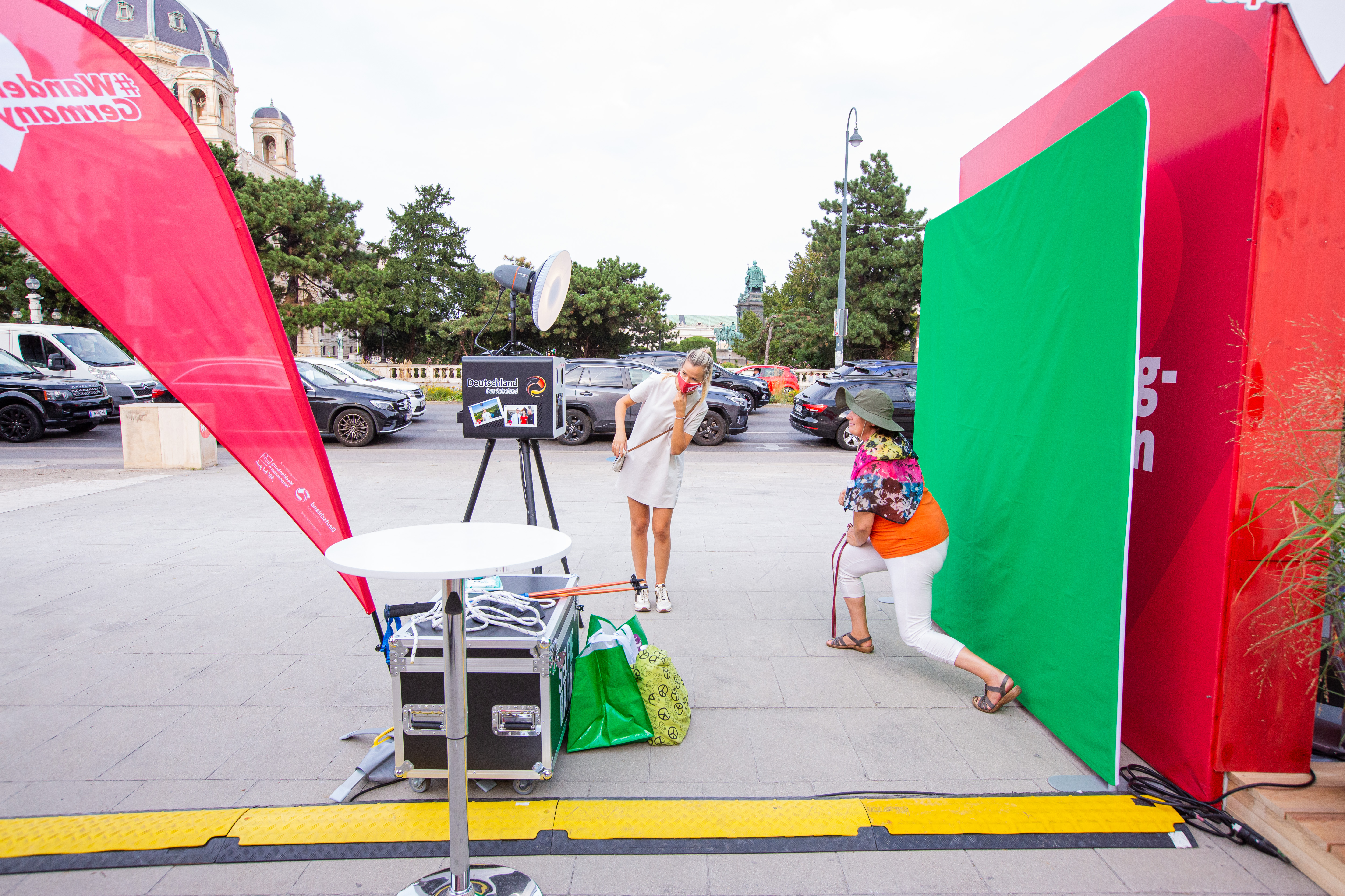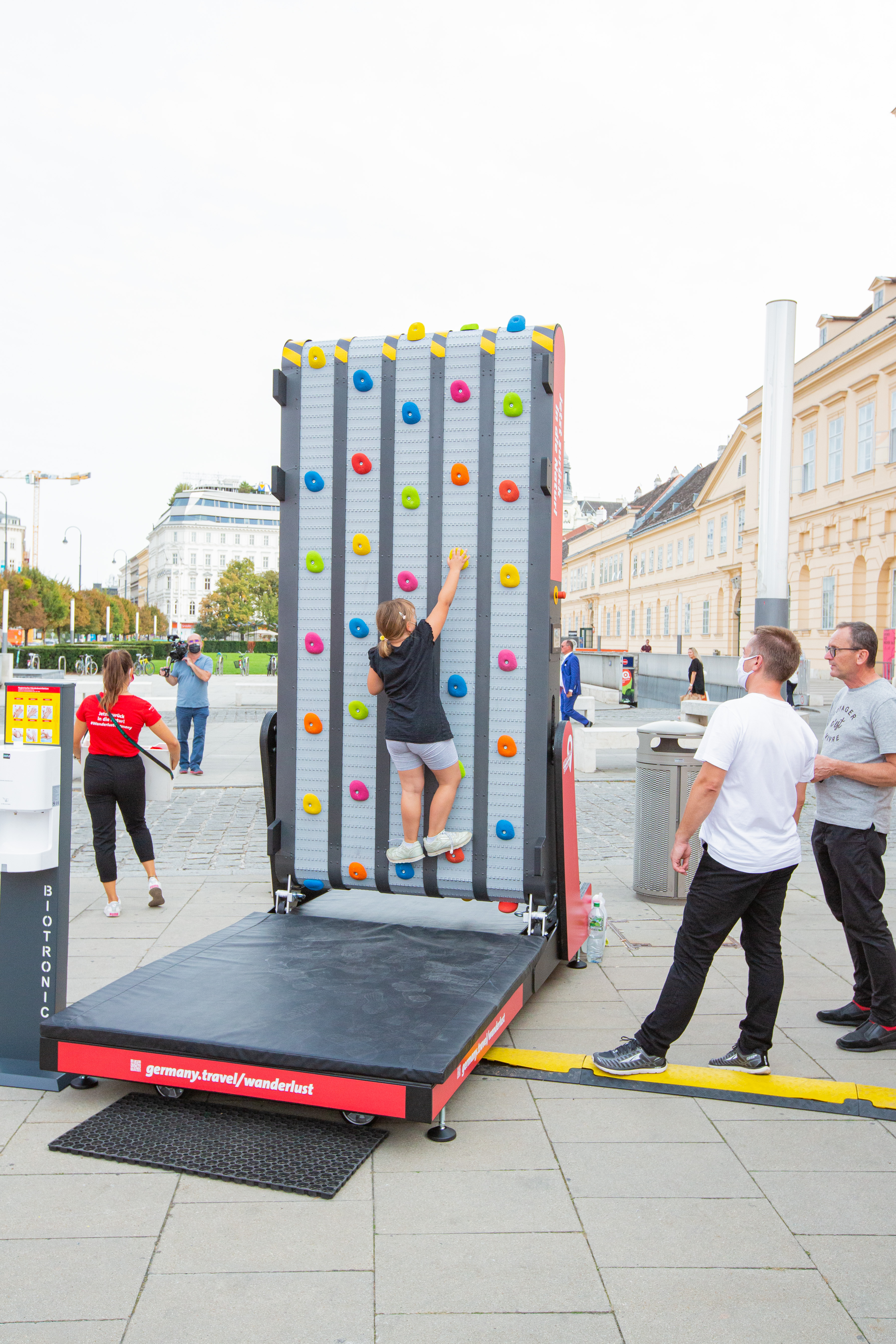 Direkt vor dem Haupteingang des Museumsquartiers konnten sich Passanten ein Bild von unserem großen Nachbarn Deutschland als Urlaubsland machen und sich über die vielfältigen Destinationen und deren Highlights informieren. Unter der Einhaltung sämtlicher coronabedingter Schutzmaßnahmen standen eine Chill-Area, eine Silent Disco, eine Kletterwand sowie digitale City Lights der Gewista zur Verfügung. Via dieser City Lights, die in gebrandeten Containern platziert waren, konnte je ein Passant an unterschiedlichsten Liveschaltungen zu touristischen Attraktionen mit charmantem Lokalkolorit teilnehmen. Das Angebot reichte von einer Pinguin-Fütterung im OZEANUM in Stralsund über eine Führung durch die Baden-Württembergischen Brauereien Adler und Brauhaus Schwanen bis hin zu einer Backstubenbesichtigung im schönen Bayern, bei der man den Bäckern der Backstube von Freibäcker Arnd Erbel aus Dachsback bei ihrem Handwerk über die Schultern schauen konnte.