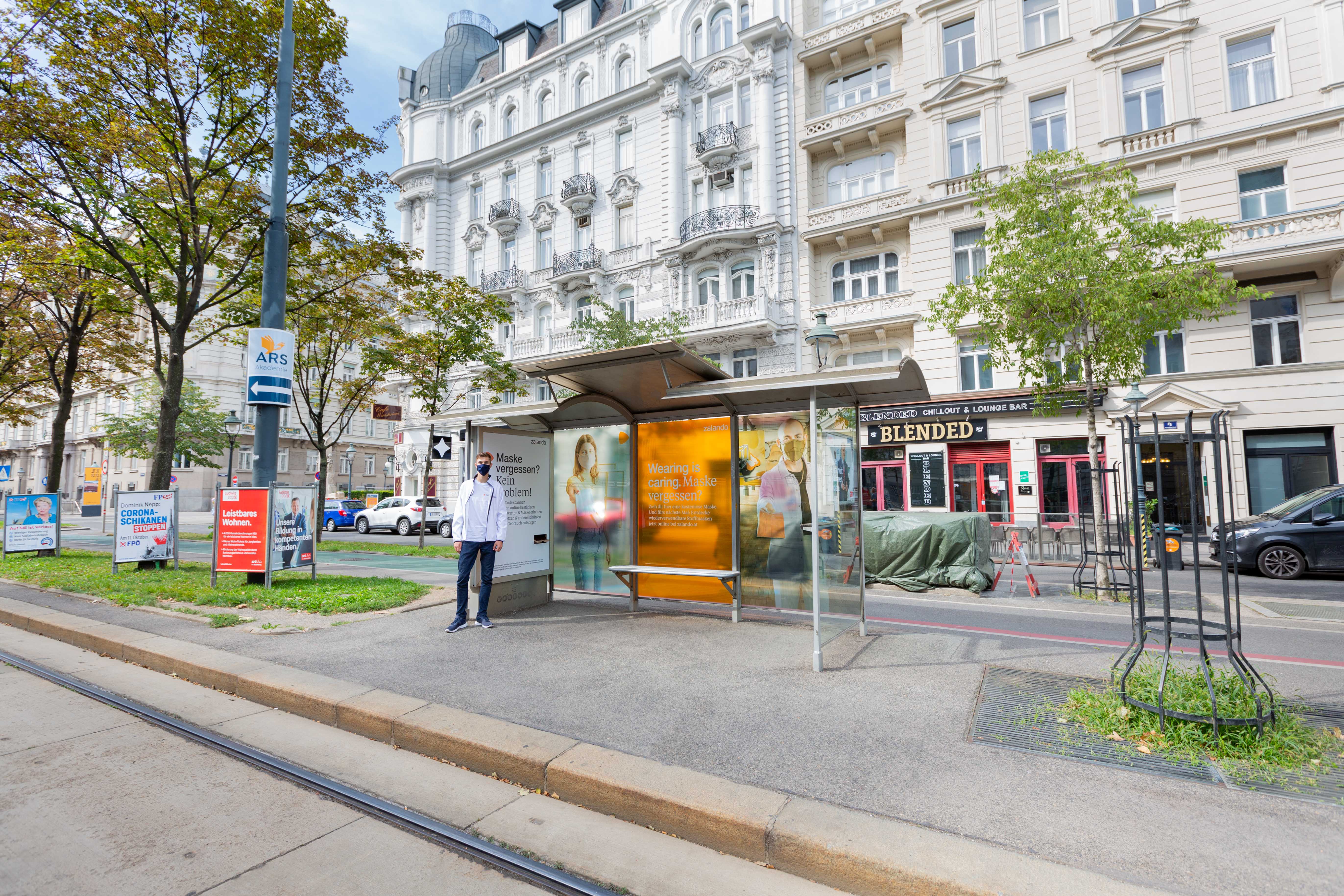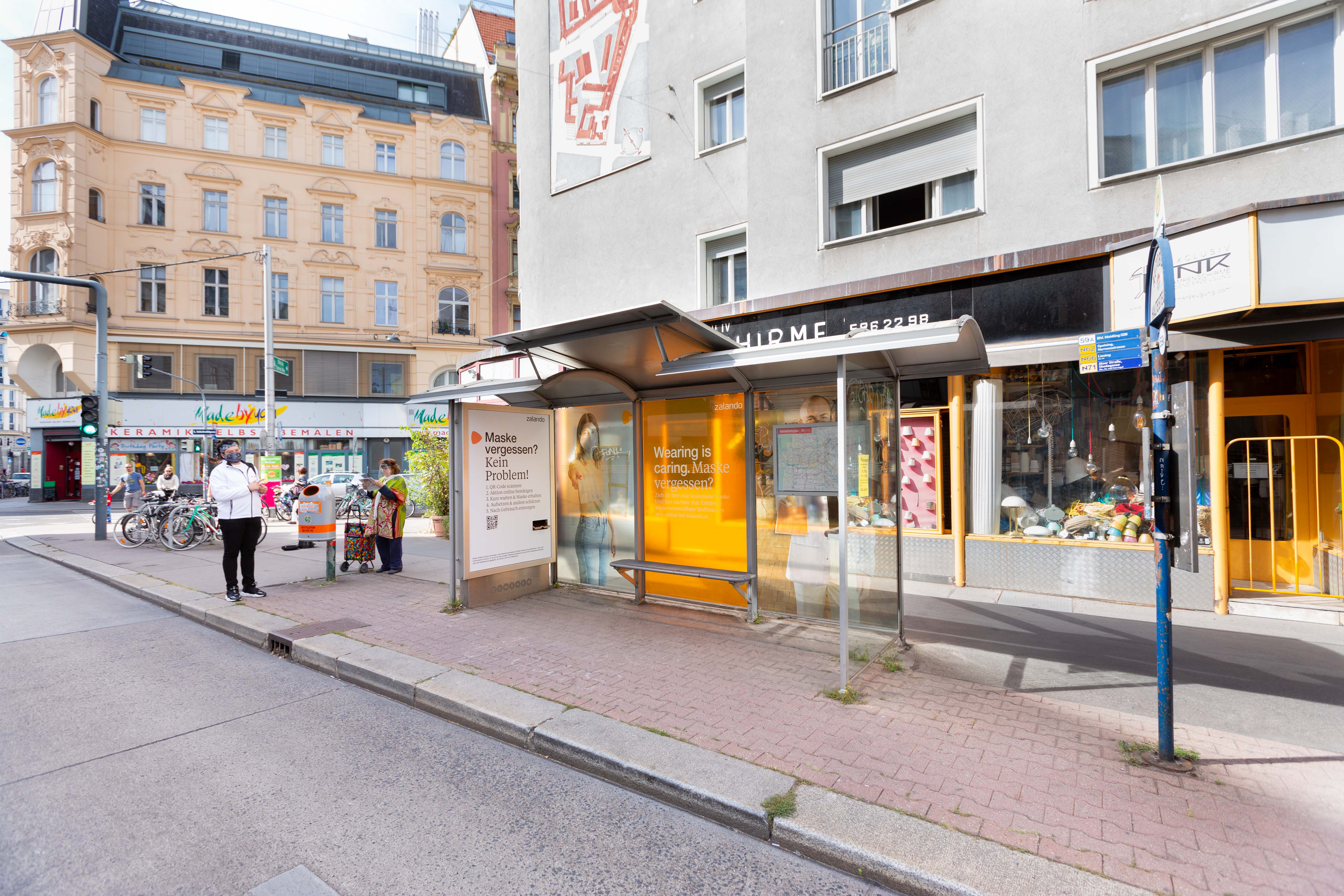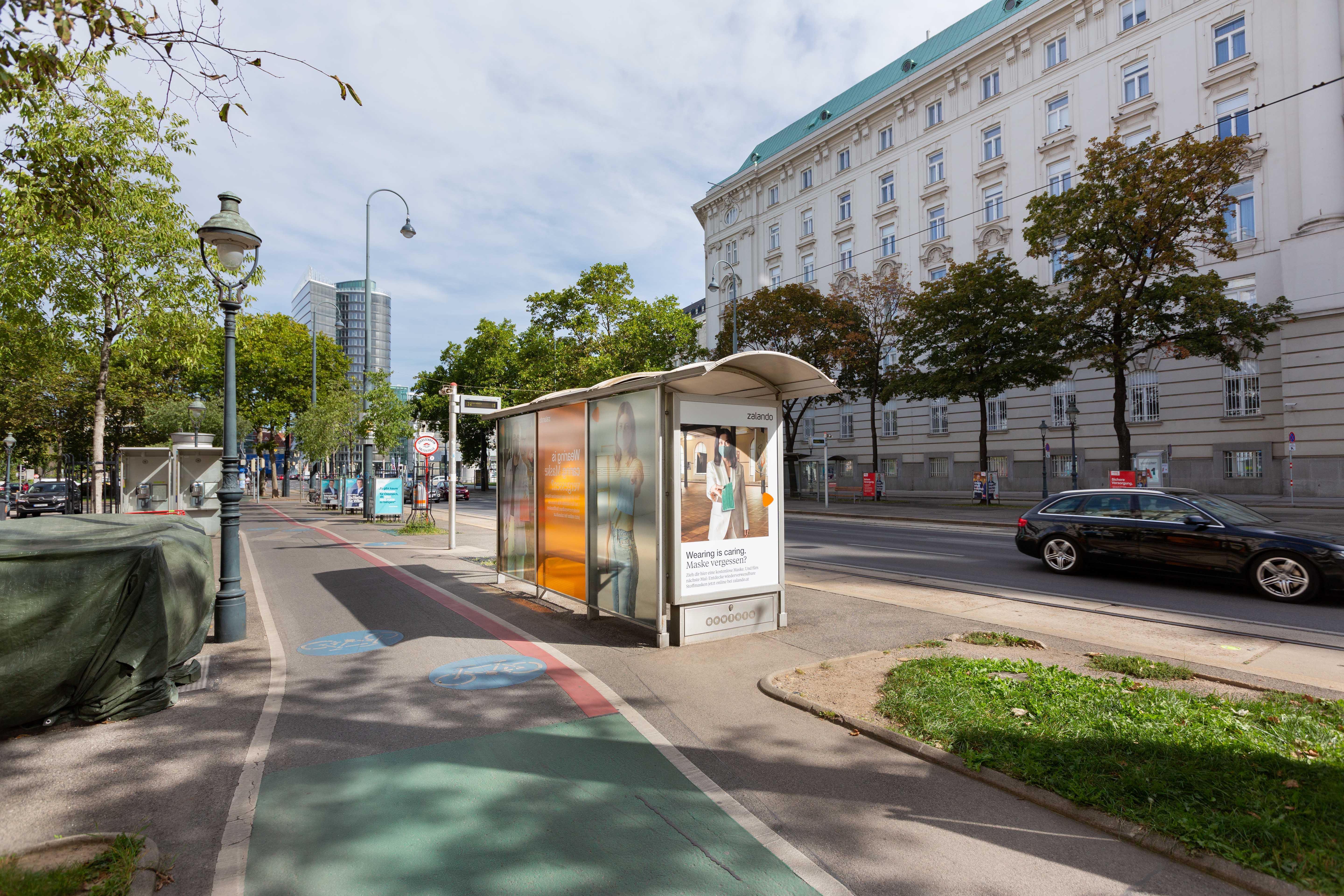 An sechs hochfrequentierten Standorten in Wien setzt die Gewista für Zalando via Wartehäuschen-Sonderwerbeformen eine kreative Sensibilisierungskampage zum Thema MNS-Schutz unter dem Motto „Na Oida! Maske vergessen? Wearing is caring.“ um. Gerade direkt vor dem Einsteigen in öffentliche Verkehrsmittel wird daran erinnert einen MNS zu tragen. Für alle die Ihren vergessen haben, schafft Zalando hier Abhilfe. Das im Total Look -Folien an den Glasflächen in Kombination mit City Lights-  gebrandete Wartehäuschen ist ein optischer Hingucker und die darin befindlichen City Lights fungieren als MNS-Dispenser. Auf dem City Light-Sujet reicht ein weibliches Testimonial symbolisch einen MNS der auch haptisch einfach zu bekommen ist. Die Passanten gelangen über das Scannen eines QR Codes am Sujet, mittels Smartphone oder Tablet, direkt auf eine eigene Zalando Landing Page. Durch betätigen des dort aufscheinenden Zalando-Buttons wird am City Light über einen Dispenser in Echtzeit einzeln verpackte MNS ausgegeben. Der Fahrt in den Öffis oder einem anderen MNS-pflichtigen Ort steht nichts mehr im Wege. Die Wartehalleninszenierung wird im Out of Home-Mediamix mit klassischen City Lights unterstützt die auf den Sujets auf die in nahem Umfeld befindlichen Wartehäuschen, inklusive Adressnennung, hinweisen.