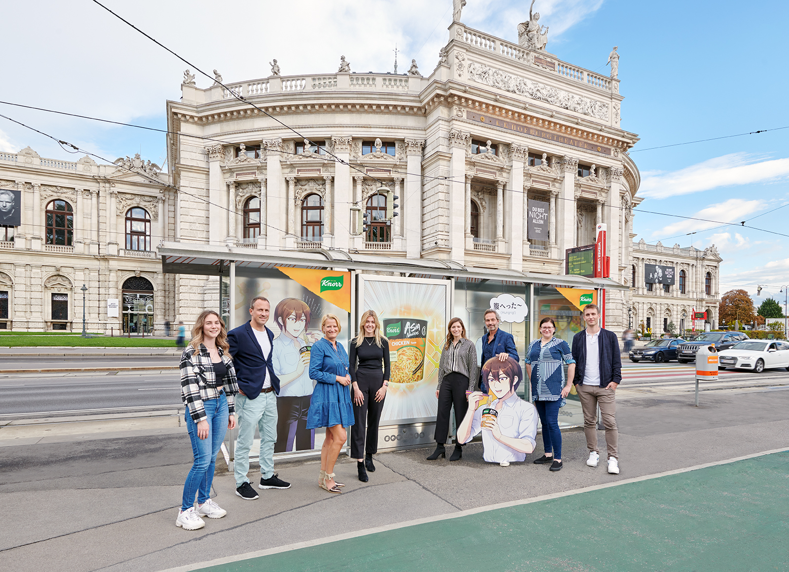 Foto v.l.n.r.: Tamara Wagner (PHD Media) – Dominik Weißbacher (CD & GF Since Today) – Barbara Brugger-Buchmann (Kundenberatung Since Today) ) – Kerstin Streich (Brand & Innovation Manager Knorr) – Tina Sieberer (Head of Marketing Knorr) – Michael Reiser (Gewista) – Elisabeth Dollezal (PHD Media) – Jan Jerabek (Gewista)