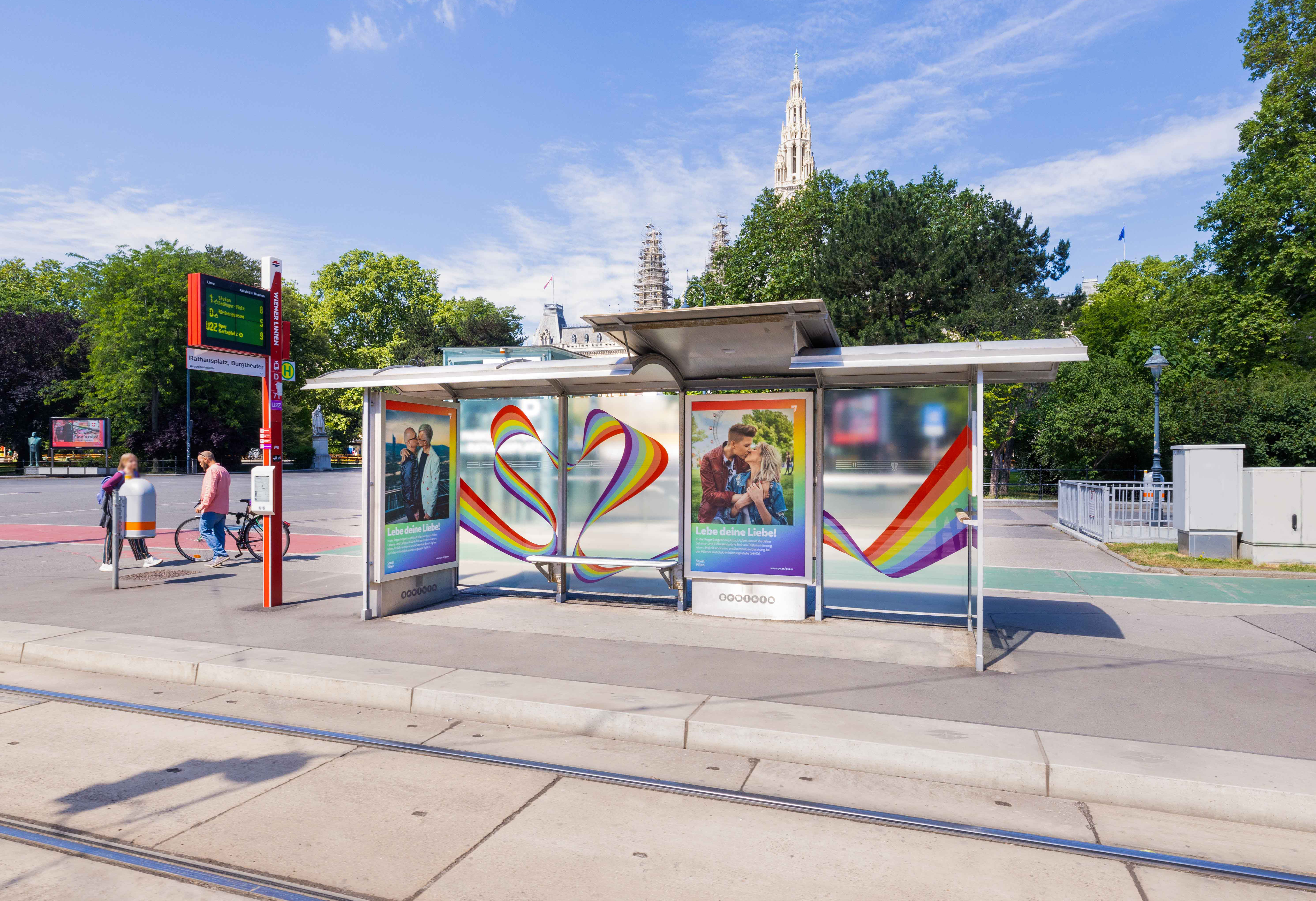 Das Highlight der Kampagne der Stadt bildet die gebrandete Wartehalle am Universitätsring, geziert von einem Regenbogen. Zusätzlich dazu verbreitet die Stadt die Botschaft auf mehreren Werbeträgern von Gewista wie City Lights, Digitalen City Lights und Straßenbahnen. „Als Gewista ist es uns eine Freude, die Kampagne des Presse- und Informationsdienstes der Stadt Wien zu hosten. Wir stehen zu 100 Prozent hinter der wichtigen Botschaft, denn wir treten als Unternehmen für Diversität, Gleichberechtigung und Toleranz sowie für eine weltoffene Stadt ein“, so Gewista CEO Franz Solta. Die Sujets sind noch bis Mitte Juni auf den Gewista-Flächen zu sehen.