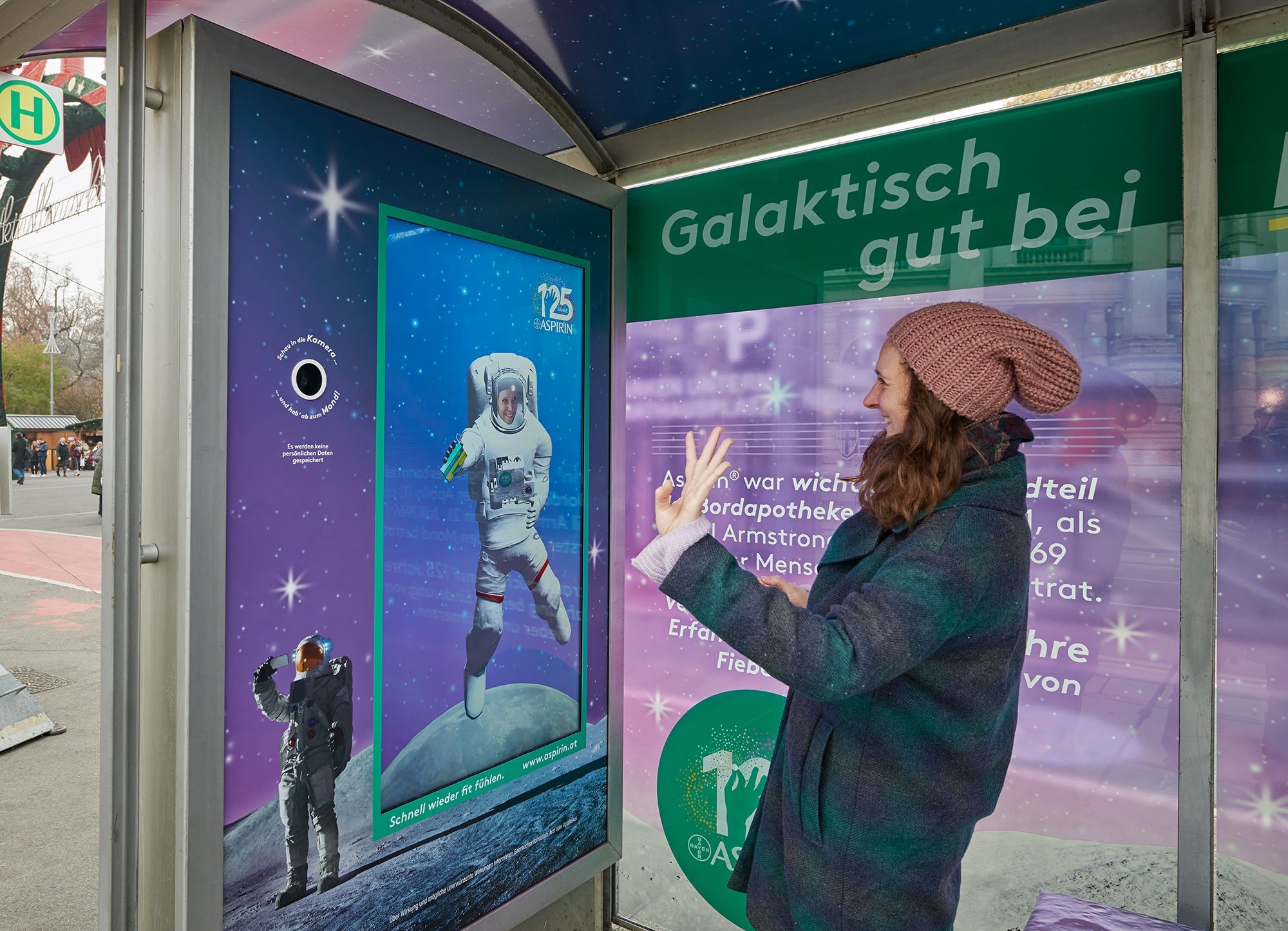 Interactive Digital City Light in a waiting shelter - Aspirin