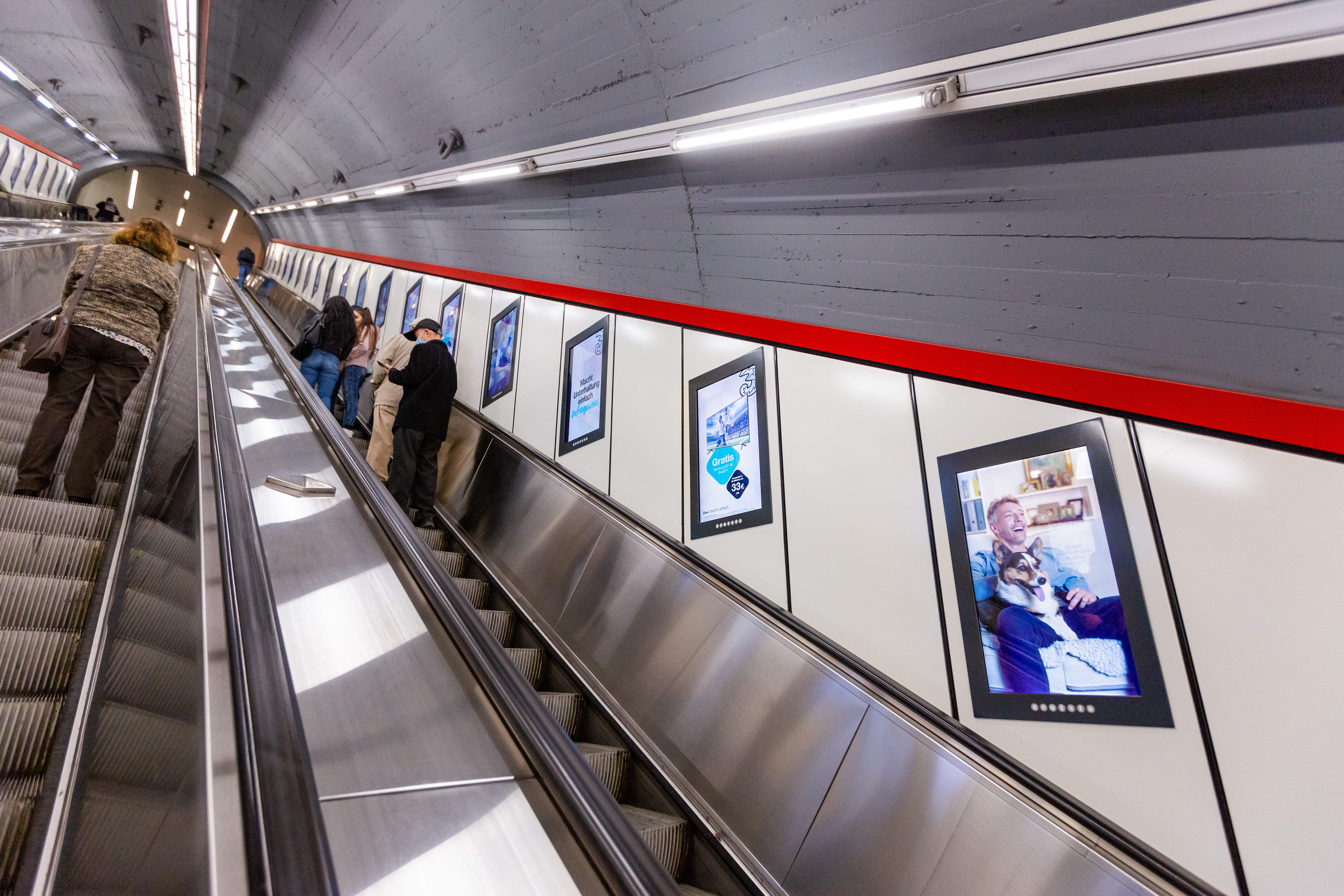 Out Of Home advertising form: DOOH escalator network at Karlsplatz Vienna