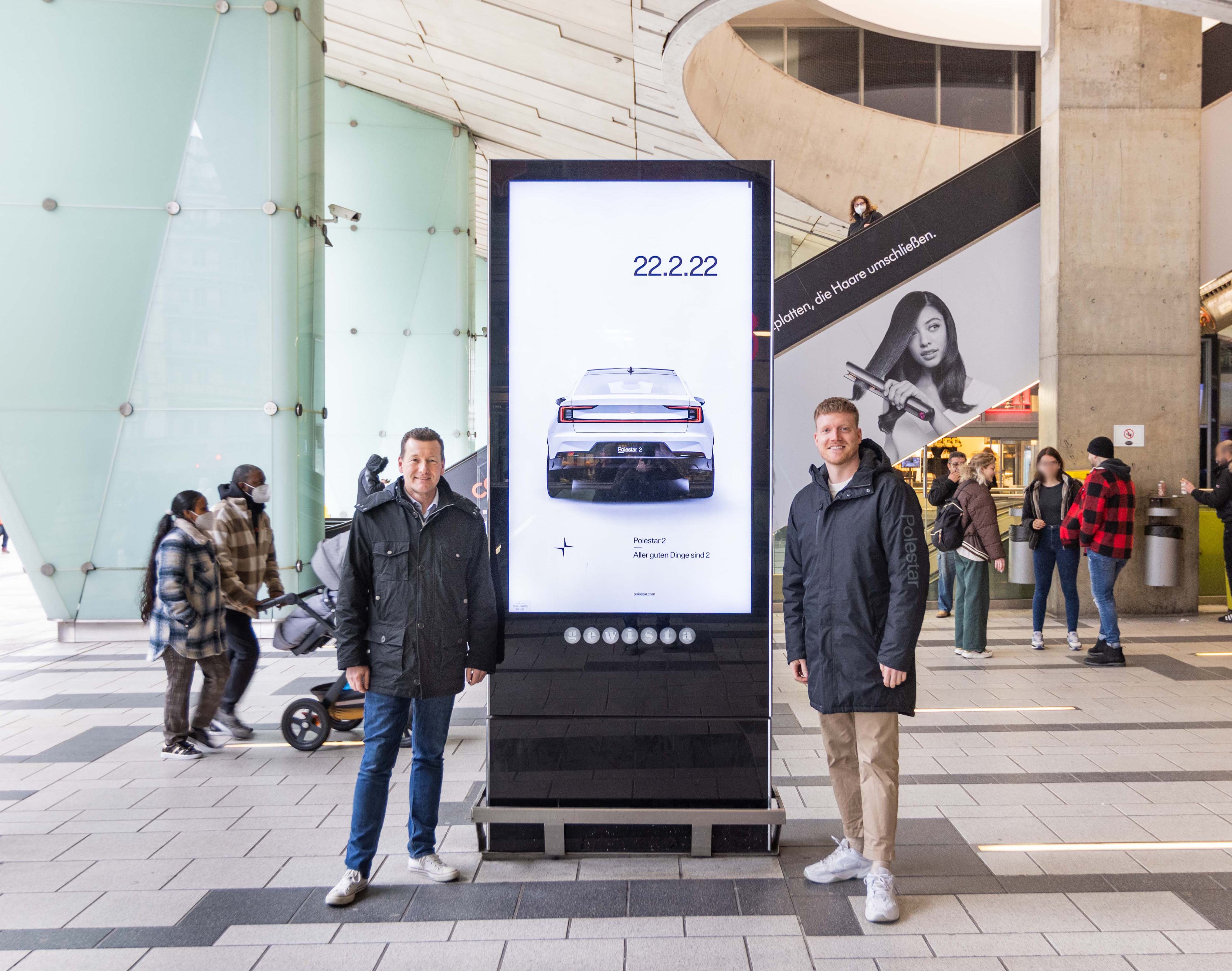 Polestar is taking advantage of this unique opportunity and is focusing communication on the all-electric Polestar 2 e-auto, true to the motto, "All good things come in twos." After all, such a unique day calls for an equally unique action,” as Hannes Kläger, Head of Marketing at Polestar Austria, also confirms. "Today, 2/22, we are particularly proud of our Polestar 2. As unique as the date, itself, is the opportunity to drive true mobility change. Polestar 2 is the foundation for our goal of building a carbon-neutral car by 2030. But, more than any other number, 2 also stands for partnership, so we're pleased to team with Gewista to raise awareness of Polestar on 592 digital screens, nationwide, in Austria."